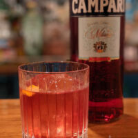 アットホームな雰囲気でカクテルを楽しんでほしいと、店内の調光は少し明るめにしている。「食事と共に楽しんでいるイメージ」とイタリアンカクテルについて語る岡村氏。季節のフルーツカクテルや限定ウイスキーなどさまざまな洋酒がある中で、オリジナルの「ジャパニーズグレープネグローニ」は、日本のクラフトジンにカンパリ、巨峰のリキュールを合わせた一杯。シンプルなアレンジが深みのある味わいに。隠し味は岡村氏の創造力と、磨き続ける技術だ。