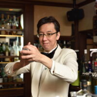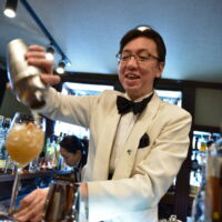 「イタリアのカクテルと言えば、ビターやアマレットのカクテル、またベリーニなどハリーズバー系のスパークリングワインなどのイメージ」と語りながら、田村氏は手元のイタリアンリキュールでカクテルを創ってくれた。リノマト・アメリカーノ・ビアンコとラッツァローニのアマレットによる即興から、香り豊かで複雑な味わいの一杯に仕上がる。コンペティションの常連であり、数知れないほどの入賞・優勝を飾る実力はさすがとしか言いようがない。