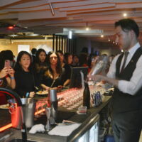 そして最後のデザートカクテルは、㈱ボンタイン珈琲本社(名古屋)代表の加藤慶人氏と、アンダーズ東京(虎ノ門)の渡邉由希子氏による二つの「ティラミス」の競演。バリスタとバーテンダー、それぞれの視点によるティラミスのコントラストが鮮明で、いずれも巧みな技と驚きのおいしさに感嘆することしきり。豊かな香りに誘われて、バーカウンターは長蛇の列となった。
