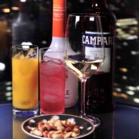 コンペティションで数々のトロフィーを持ち帰ったバーテンダーチームが秀逸な一夜を演出してくれる。カクテル「アメリカーノ」はデコレーションにオレンジのスライスとオレンジのピールを飾り、爽やかな苦味で食前にも食後にも楽しめるカクテルに仕上げた。