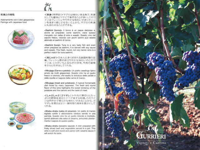 グリエリは昨年、同社のそれぞれのワインと和食との相性を示したカタログを制作。これは『和食で愉しむイタリアワイン』(2018年、万来舎)を執筆するなど長年、イタリアワインと日本の食文化の共鳴を説き続けているソロイタリアの代表、林茂氏が監修して作られたもの。